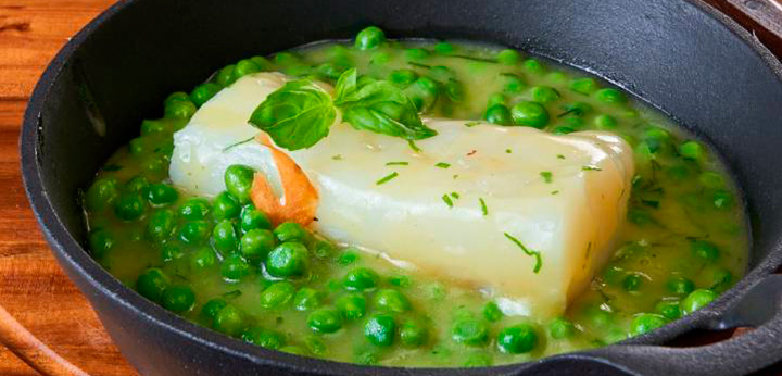 Una recepta molt rica en proteïnes i amb un exquisit sabor, gràcies a la combinació dels pèsols amb la melosa textura del bacallà.